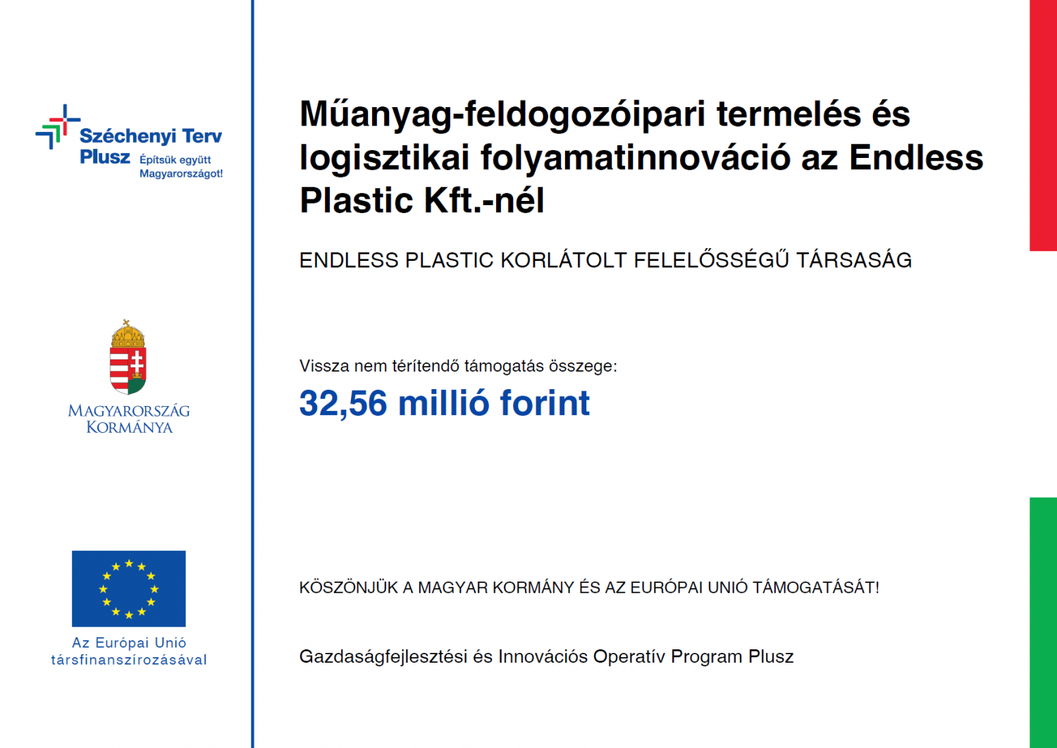 A kedvezményezett neve: Endless Plastic Korlátolt Felelősségű Társaság
